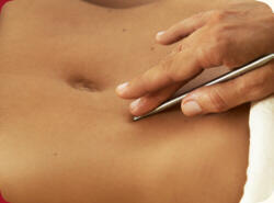 OhrakupunktmassageBei dieser Technik werden mit einem Akupunktstäbchen die therapeutisch relevanten Punkte gedrückt.